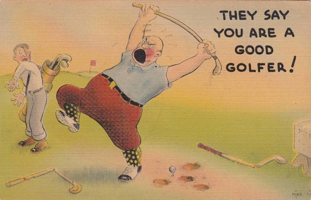 LP73 Mad Golfer, Comic Postcard, PU1947.