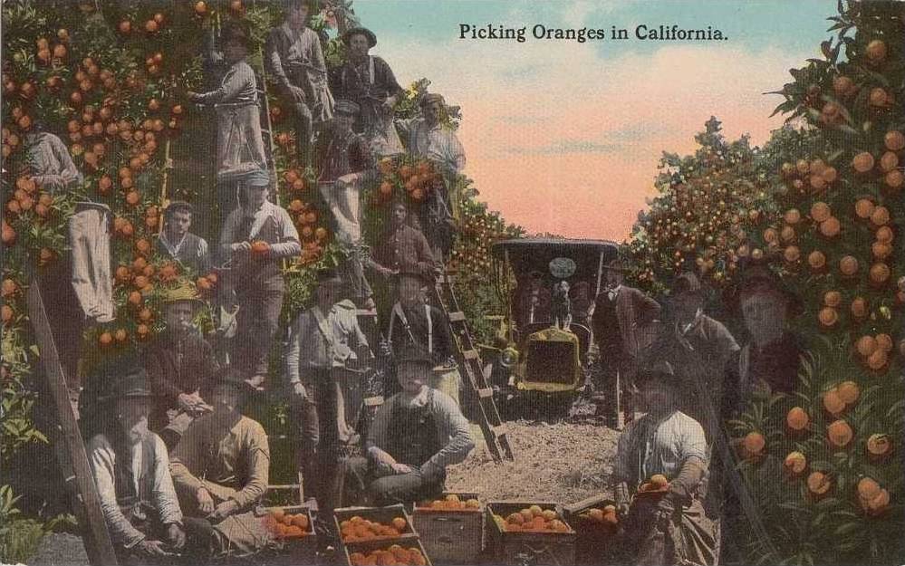 LP75 California, CA, postcard, Picking Oranges.