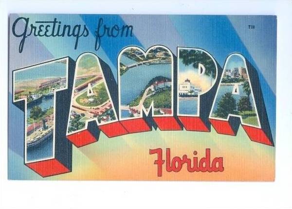 LP92 LARGE letter, Tampa, Florida, FL, Postcard, Tichnor.