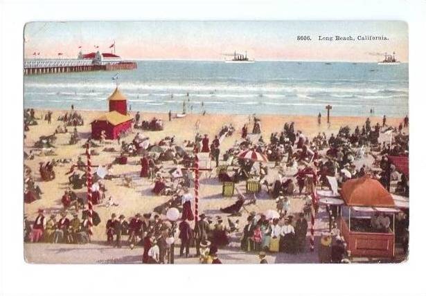 LP92 Long Beach, California, CA, postcard, View, Bathing