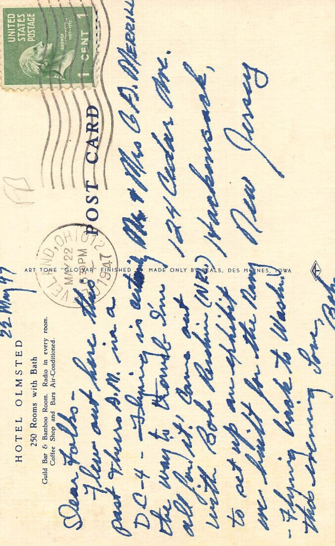 LPD08 Ohio Postcard: Cleveland, Hotel Olmsted :: Vintage Postcard Condition: Average to Very Good;