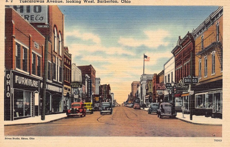 LPD64 Ohio Postcard: Barberton, Tuscarawas Ave :: Vintage Postcard