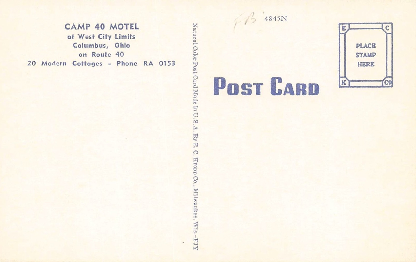 LPD80 Columbus Ohio Postcard Rt 40 Motel