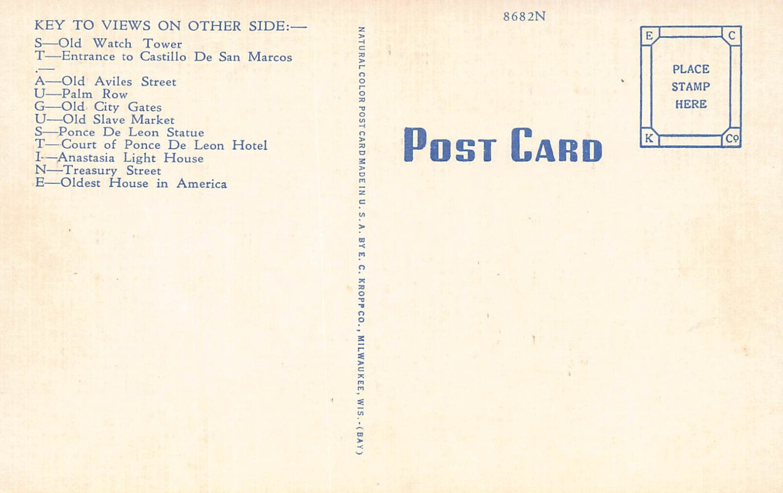 LPD85 St Augustine Florida Large Letters Postcard Curteich Linen :: Vintage Postcard Condition: Average to Very Good
