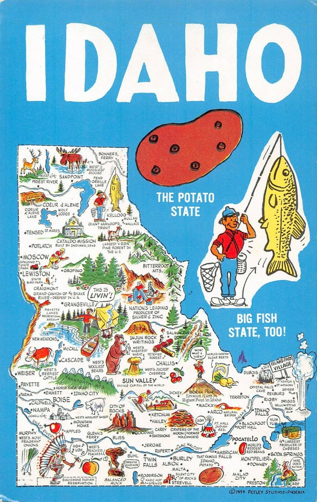 LPM68 Idaho Map Chrome Postcard The Potato State
