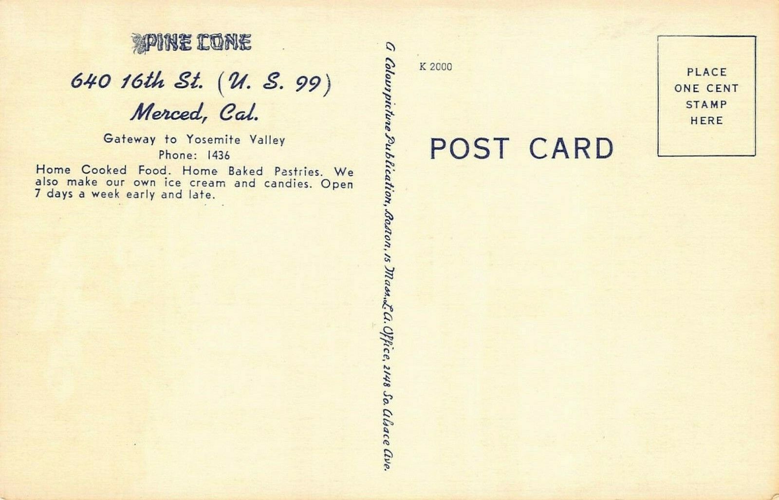 LPS13 MERCED California Pine Cone Restaurant Postcard Views