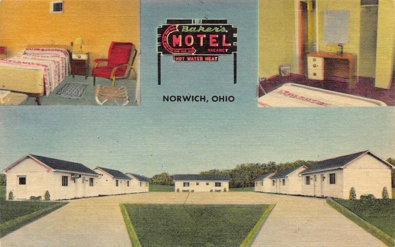 LPS46 NORWICH Ohio Baker's Motel Views Postcard