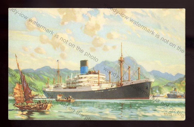 LS5046 - Unknown Blue Funnel Cargo Liner - Artist Walter Thomas - postcard