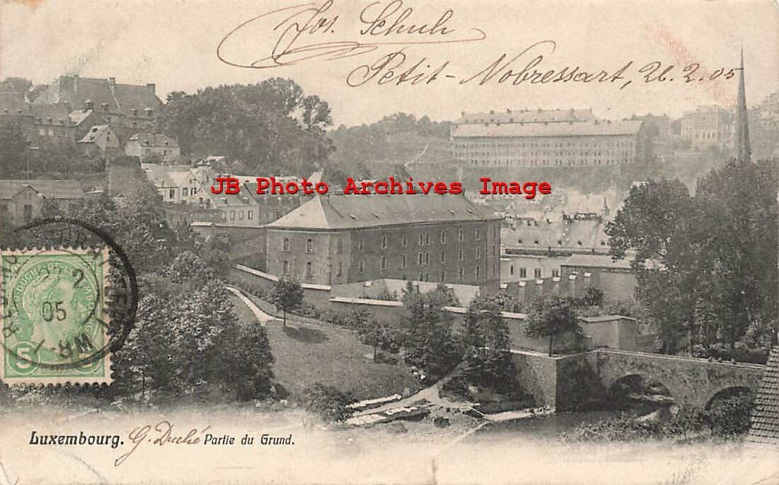 Luxembourg, Parlie Du Grund, 1905 PM, Stamp Product Photo Click Image for Larger Preview Product Information This is a nice vintage early printed postcard showing a scene of the Parlie du Grund in Luxembourg. Publis ... Read More
