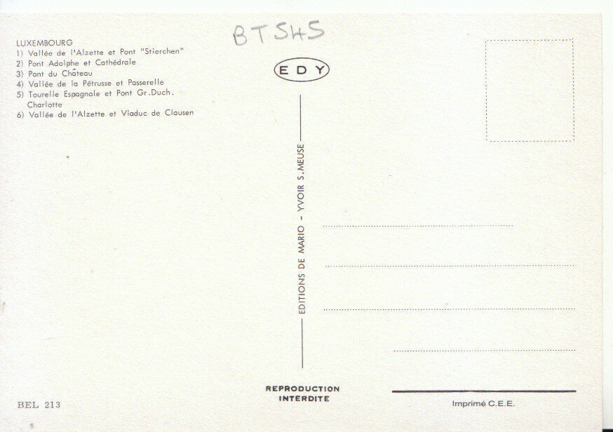 Mo's Postcards Postcard Description: Luxembourg Postcard - Ponts De La Ville Genealogy Information: Defect(s): Postage & Payment: For U.K residents the quoted P & P fee is for any number of postcards purchased at on ... Read More