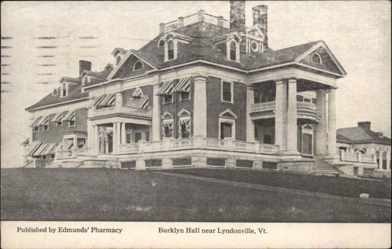 LYNDONVILLE VT Burklyn Hall c1910 Postcard