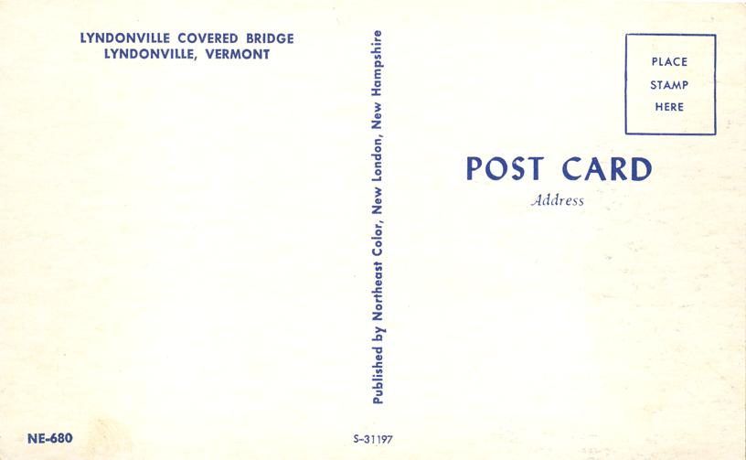 Lyndonville, Vermont Covered Bridge.Standard sized chrome card.