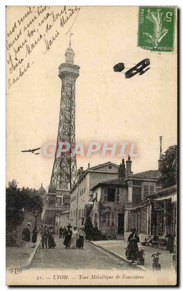 Lyon - Metallic Tower Fourvières - aircraft - airplane - Old Postcard