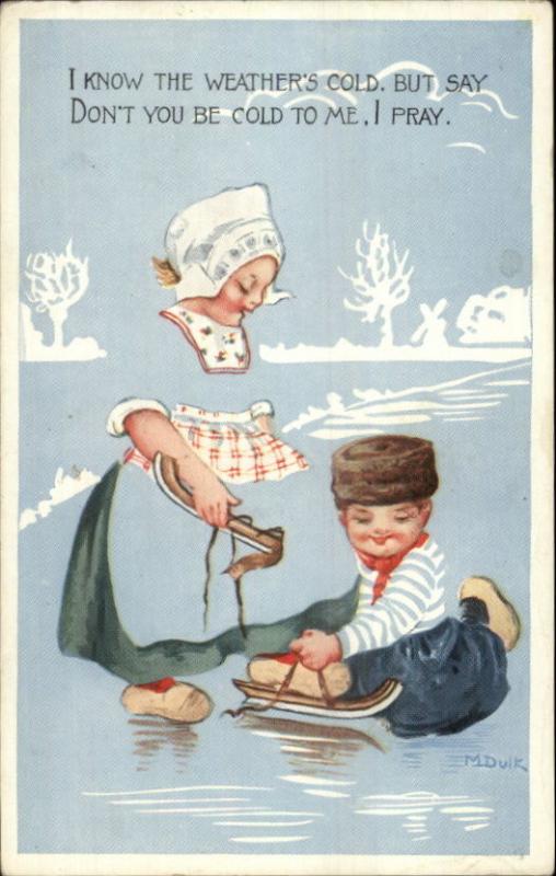 M. Dulk - Dutch Children Ice Skating FADEAWAY c1915 Postcard