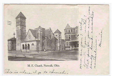 Description: M E Church Norwalk Ohio 1906 postcard Type: undivided back postcard. Condition: very good, some corner wear. Any hatched effect on pic is scanner effect, not on postcard. Postal Use: used, posted ... Read More