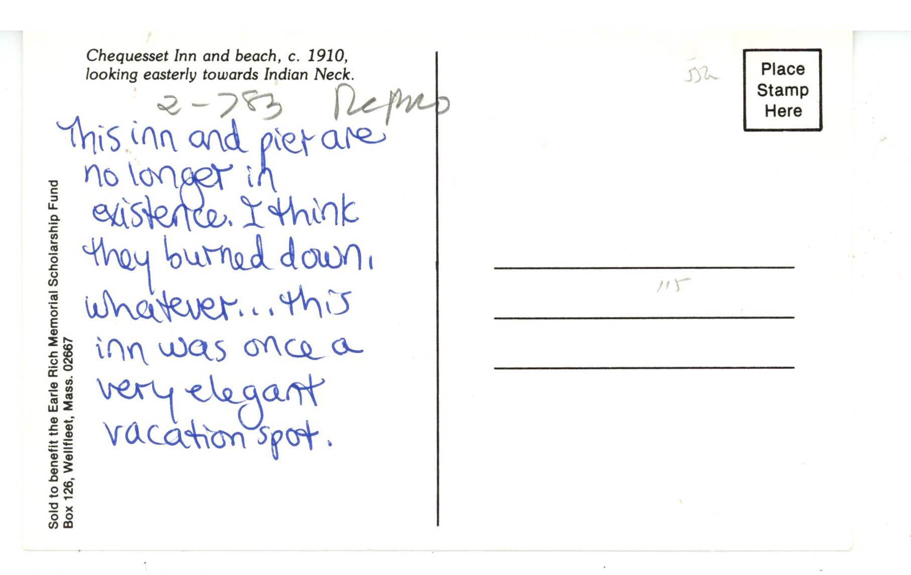 MA - Cape Cod, Wellfleet. Chequesset Inn & Beach ca 1910 (Repro)