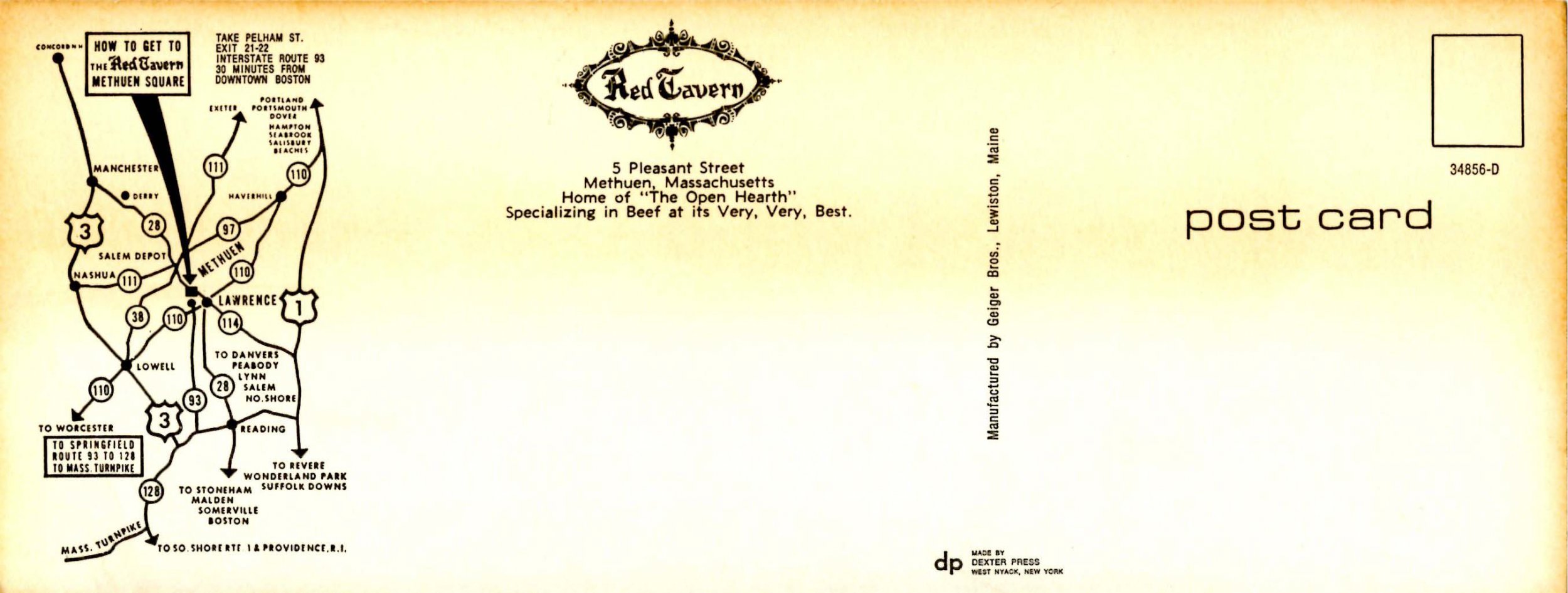 MA - Methuen. The Red Tavern (3.5" X 9").