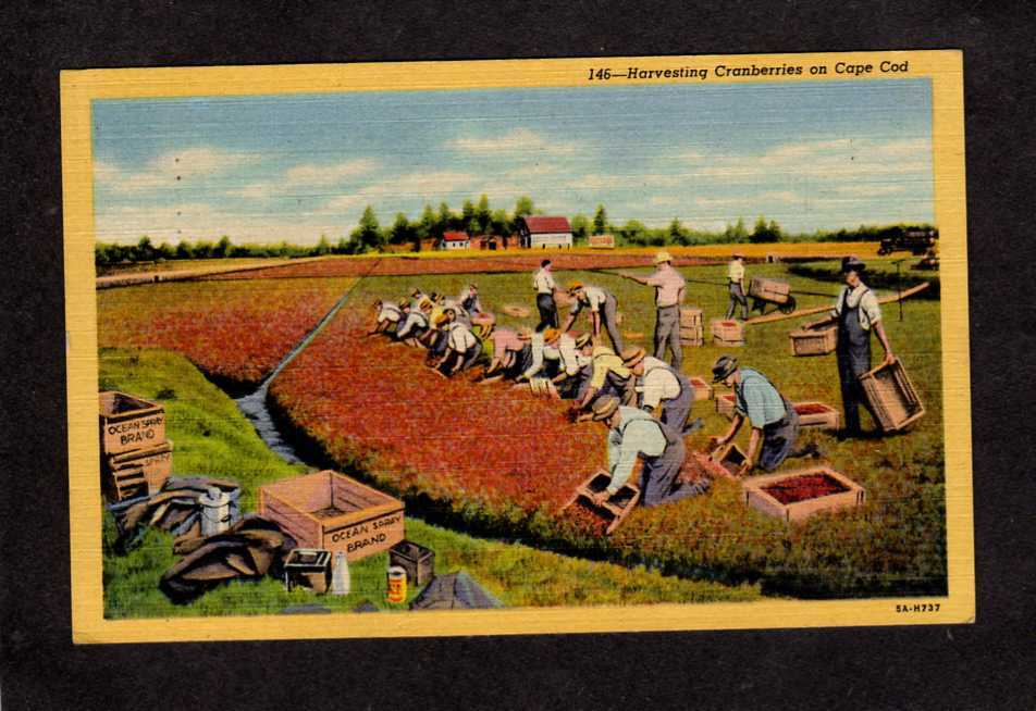 MA Picking Harvesting Cranberries on Cape Cod Mass Massachusetts Postcard