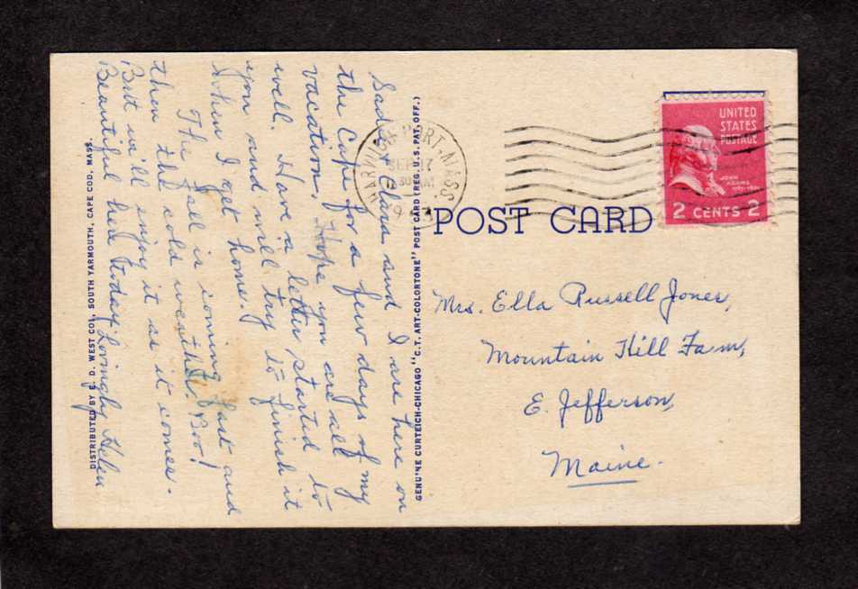 LOT DETAILS-This is a Standard sized postcard (3 1/2" by 5 1/2") with some corner and edge wear. Postally used postcard. (see scans). PC-13,947