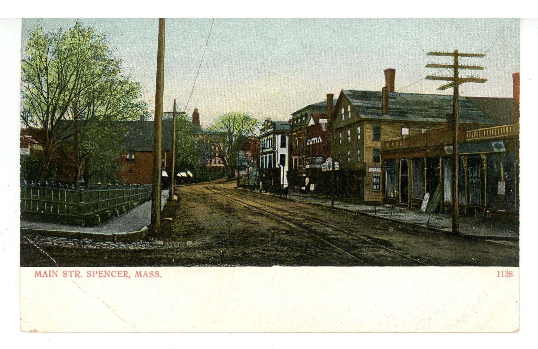 MA - Spencer. Main Street ca 1905 (crease)
