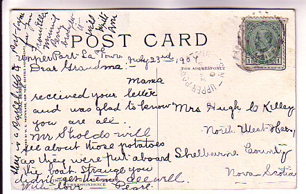 MacFarlane Floral, Pink Flower, Used 1907Nova Scotia Split Ring Cancel