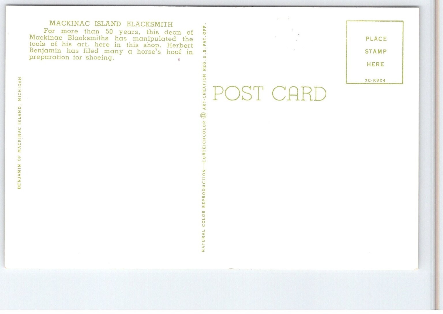 Mackinac Island Blacksmith Herbert Benjamin Horse Shoeing Curteich Postcard