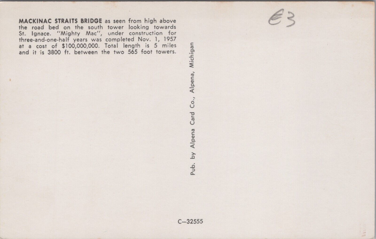 Condition: Look at the pictures for quality. The lines are from the scanner. This postcard features the iconic Mackinac Straits Bridge in Michigan, USA. The image shows a stunning view of the bridge and the strait ... Read More