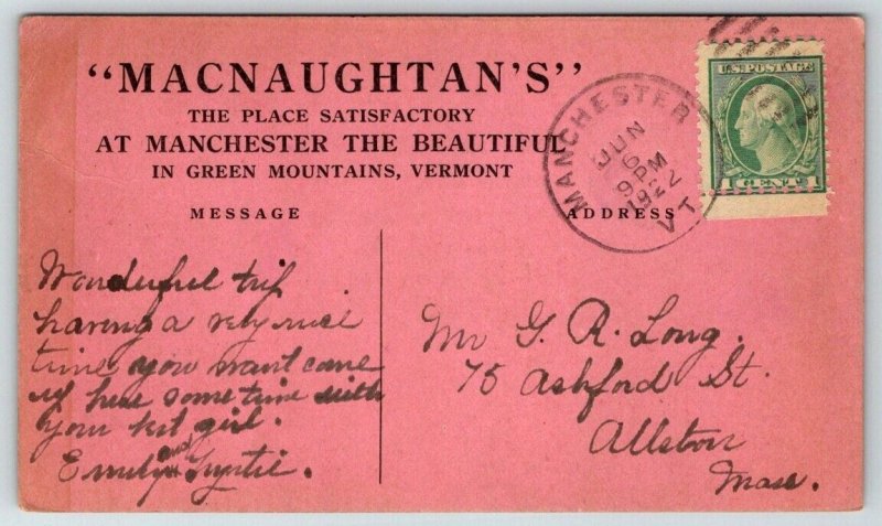 Macnaughtan's Restaurant Manchester Vermont Postcard 1922