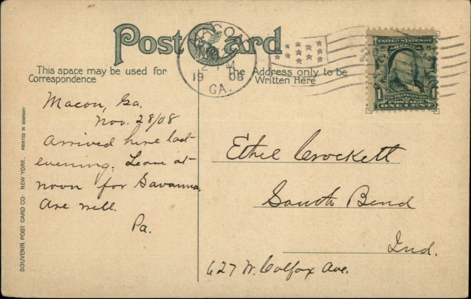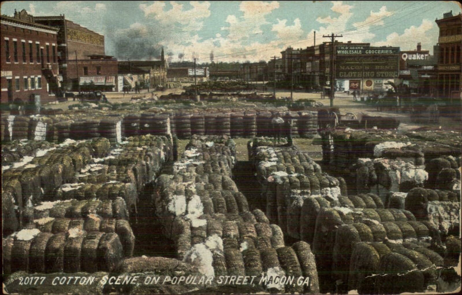Macon GA Cotton Scene on Paopular St. 1908 Used Postcard