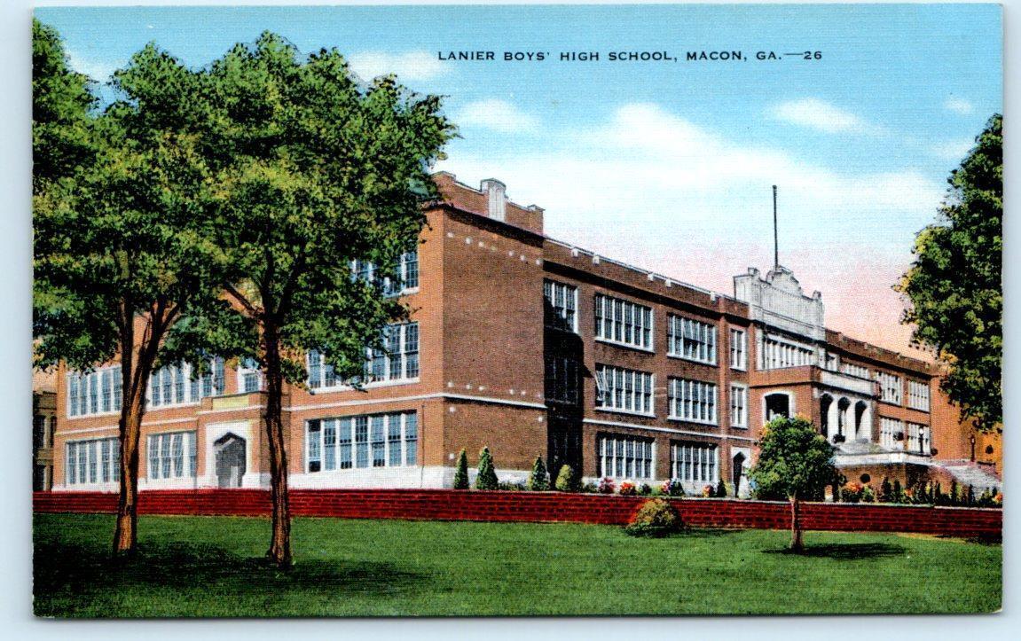 MACON, GA Georgia ~ LANIER BOYS' HIGH SCHOOL ~ c1930s Linen Postcard