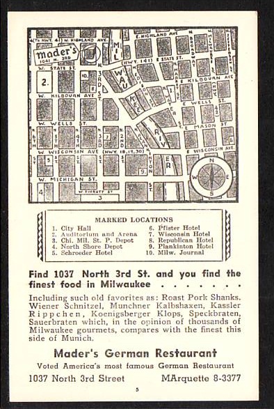 Mader's German Restaurant Map Milwaukee WI