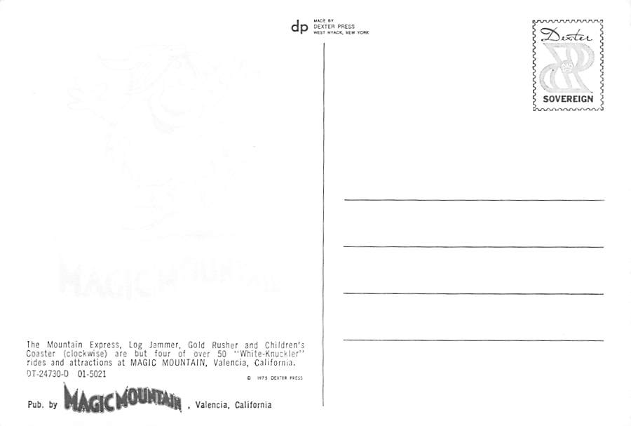Magic Mountain - Valencia, California Continental Size Postcard, Approx 4 in x 6 in (10 cm x 15.25 cm) Continental Size: 4X6 inches (10.5 cm x 15 cm)