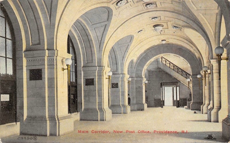 Main Corridor Interior New Post Office Providence Rhode Island 1910 postcard