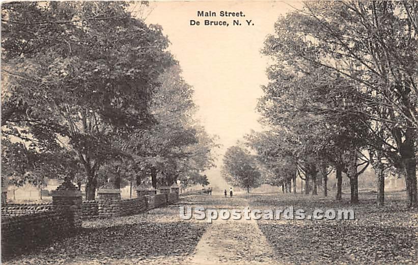 Main Street - De Bruce, New York Postcard - Unused Grade: 2 Size: R - Regular size: Approx 3 1/2 X 5 1/2 inch (9 cm X 14 cm) Grading Scale: Grade 1 = Perfect corners Grade 2 = Very Minimal corner wear, no crea ... Read More