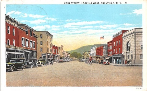 Main Street Granville, New York Postcard - 1938