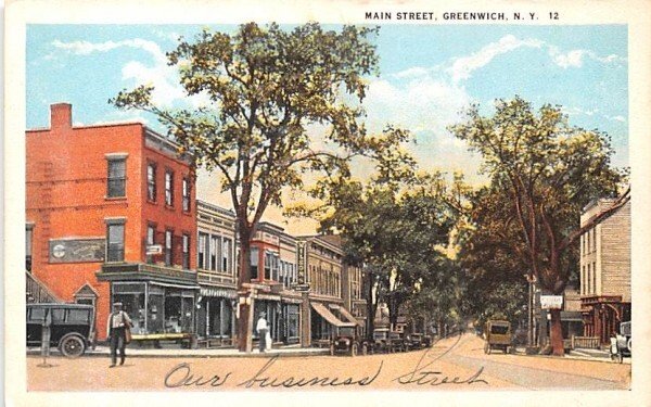 Main Street Greenwich, New York Postcard , Grade: 1 Size: Regular Size Postcard - approximately 3 1/2 inch x 5 1/2 inch (9 CM x 14 CM) Grading Scale: Grade 1 = Perfect corners Grade 2 = Very Minimal corner wear ... Read More