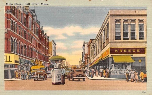 Main Street in Fall River, Massachusetts Postcard - Unused