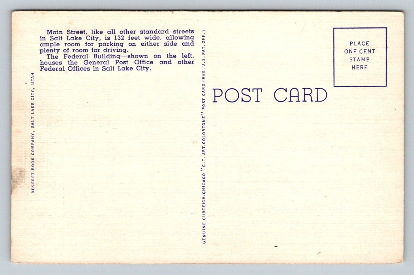 Main Street Salt Lake City Utah Postcard