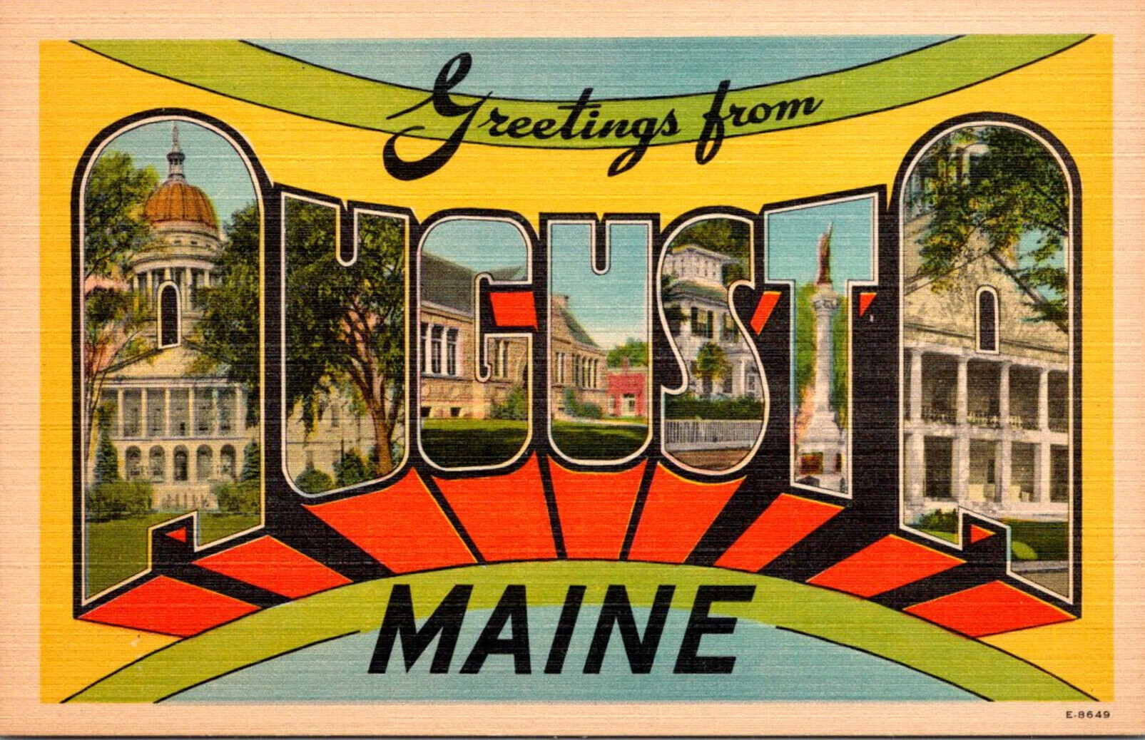 Maine Greetings From Augusta Large Letter Linen