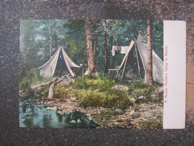 MAINE MOOSE HUNTERS CAMP SITE TENTS c1910 Postcard