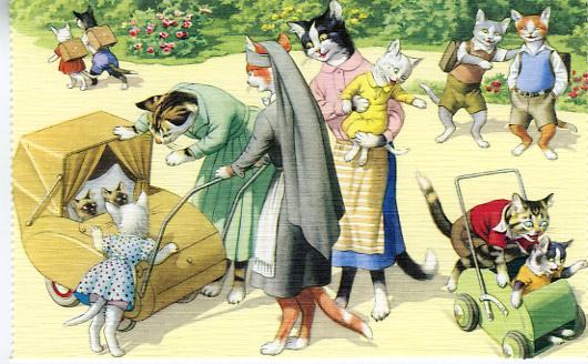 Mainzer - At The Park With The Twins - Cat Postcard