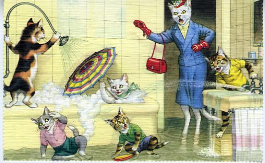 Mainzer - Bathtub Fun, Mom's Disaster - Cat Postcard