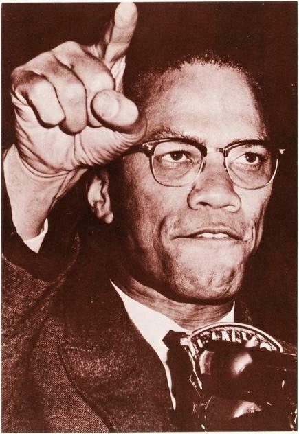 A modern postcard of African-American Muslim leader Malcolm X (1925-1965) at a microphone.