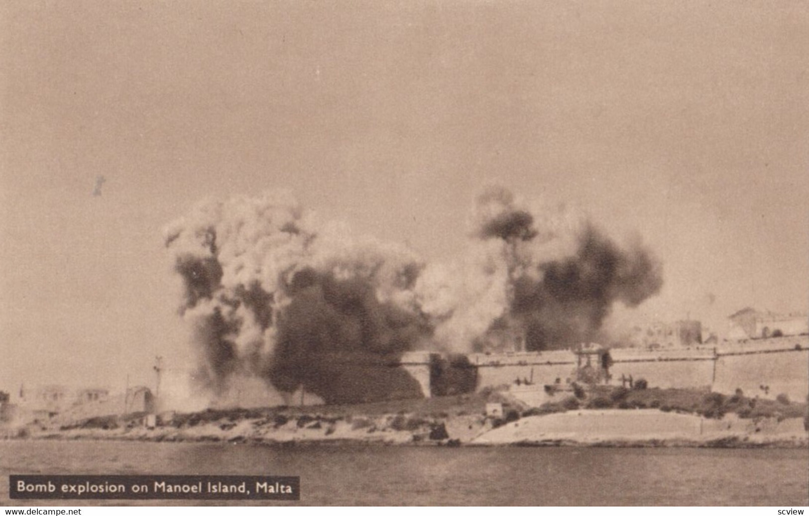 MALTA, 1940s; Bomb explodes on Manoel Island :: Postcard, 3.5 by 5.5 , Litho