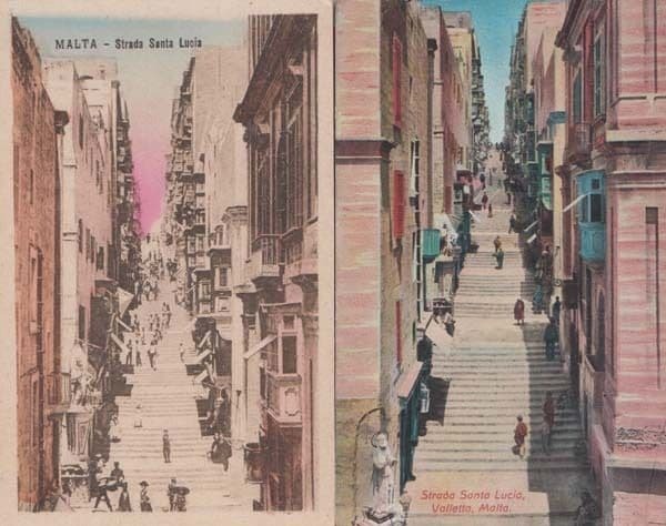 Malta Strada Santa Lucia Steps 2x Old Maltese Postcard s