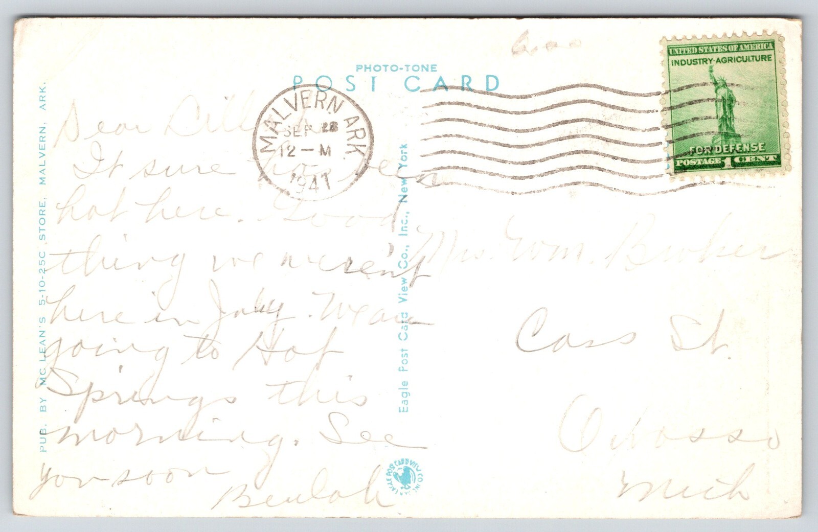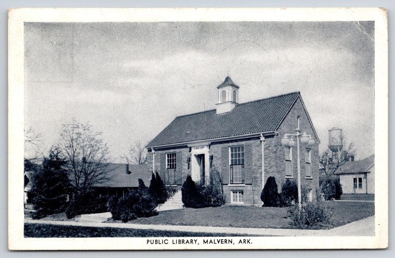 Malvern Arkansas~Public Library St View~Brick Bldg~Cupola~Water Tower~1941 PC