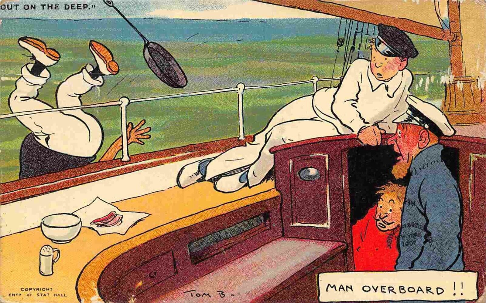 Man Overboard Out on the Deep Artist Signed Tom Browne Comic postcard