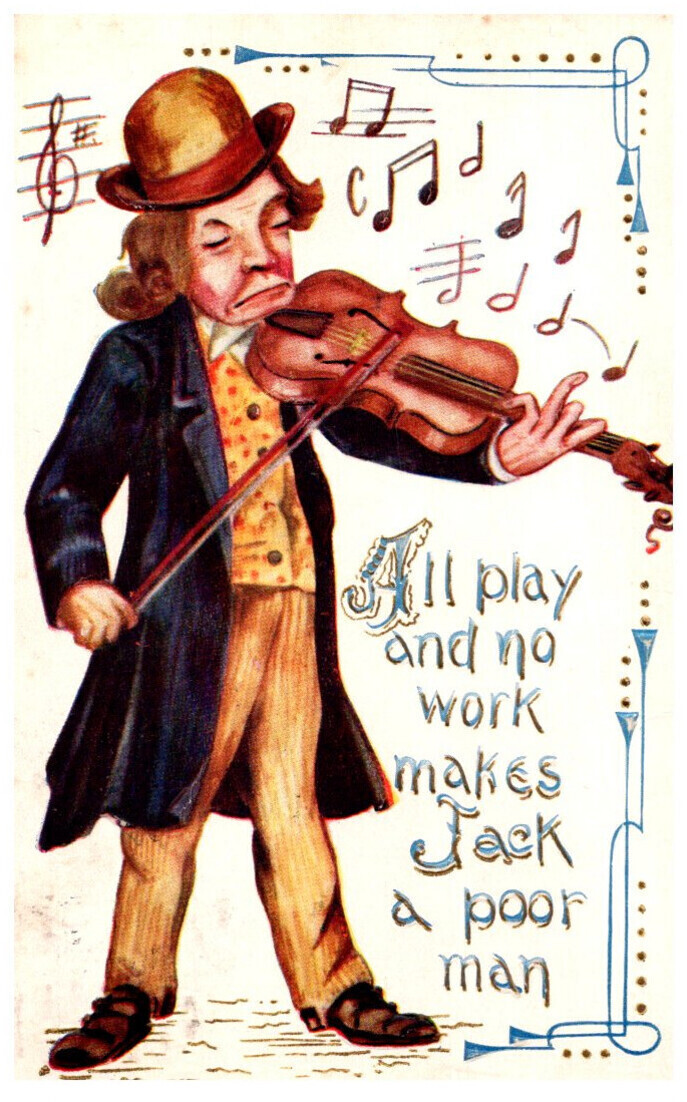 Man Playing Violin, All Play No WOrk makes Jack a poor man