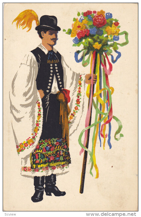 Man with flowers , Czech Republic , 10-20s :: Postcard , 3.5 by 5.5", Litho , EX