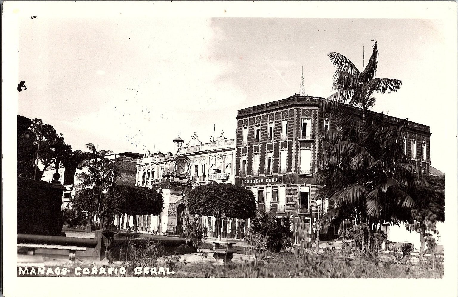 Condition: Pre-owned. With mild edgewear, Typical. This vintage black and white postcard features a striking view of the 'Correio Geral' or General Post Office in Manaus, Brazil. The image showcases the ornate, mu ... Read More